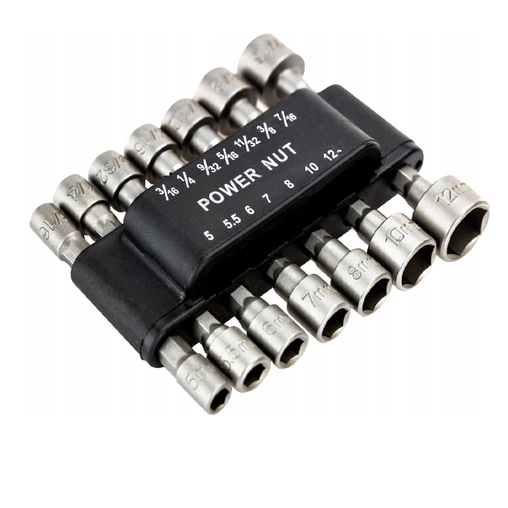 Zestaw końcówek umożliwi swobodne przykręcanie i odkręcanie sześciobocznych śrub i nakrętek o różnych rozmiarach.